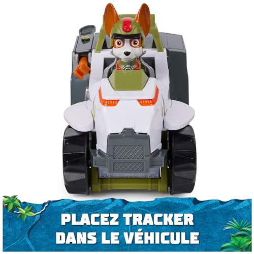 IDÉE CADEAU ENFANT – Pour un anniversaire ou Noël, offrez la voiture + figurine Tracker La Pat Patrouille Jungle Pups à un enfant ; Passez des heures de jeu formidables à travers l’univers attractif Pat Patrouille en lui faisant découvrir des métiers