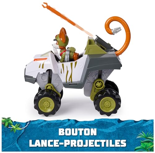 Paw Patrol – Pat Patrouille – Véhicule + Figurine Tracker Jungle Pups – Voiture Figurine Pat Patrouille À Collectionner – Projectiles – Pat Patrouille Jouet – Voiture Enfant – Jouet Enfant 3 Ans et +
