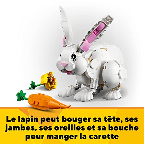 LEGO Creator 3-en-1 31133 Le Lapin Blanc, Jouet avec Animaux, Dont Figurines de Poisson, Phoque et Perroquet, Construction pour Enfants Dès 8 Ans