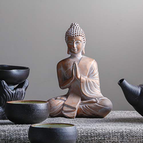 TERESA’S COLLECTIONS Figurine de Bouddha Zen Intérieur, Statue de Bouddha Résine, Décoration Bouddha Assis, Miniature Sculpture de Bouddha pour Décor de Maison et Bureau, Atmosphère spirituelle, 19cm