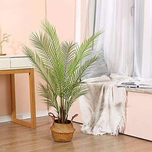 Palmier réaliste Les arbres tropicaux artificiels de Kazeila combinent des feuilles naturelles réalistes avec un panier ventral tissé de style bohème, peuvent être idéalement intégrés dans tous les coins de notre vie. Cette plante artificielle mesure 110 cm de haut et les feuilles artificielles luxuriantes rendent la plante très vivante. Matériau de haute qualité. Nous utilisons un matériau de haute qualité pour ces grandes fausses plantes d’intérieur, sûres et non toxiques, et cette base est faite d’un matériau robuste. Elles peuvent rester vertes. Toute l’année.Facile à nettoyer nos fausses plantes par rapport aux vraies plantes, elles sont très pratiques à prendre.Aucun entretien requis, pas d’arrosage.Si elles deviennent un peu poussiéreuses, veuillez les nettoyer avec un chiffon doux et sec.Décoration intérieure de la maison ce faux palmier en pot L’arbre est un excellent choix pour l’ombre intérieure et extérieure en raison de sa qualité supérieure et de sa taille appropriée. Qu’il s’agisse de votre salon, cuisine, salle à manger, chambre à coucher, salle de lecture, couloir, patio, porche ou lieux de travail tels que les magasins, centres commerciaux, Restaurant, café que vous souhaitez embellir, ce faux palmier est un choix idéal. Les troncs de branches au design réglable peuvent être pliés. Lorsque vous les sortez de la boîte, vous devrez peut-être réutiliser les plantes artificielles pour obtenir le look que vous souhaitez. Rapprochez-la de l’état réel de la plante, plus vive et réaliste.