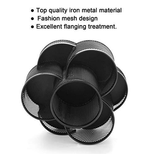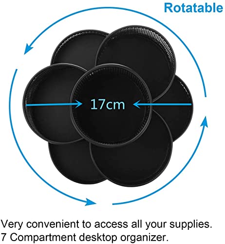 Porte-crayons bureau rotatif, Porte-stylo en métal pour le bureau avec tapis en caoutchouc antidérapant, rotation à 360 ° et 7 compartiments, organiseur de rangement pour fournitures de bureau, Noir