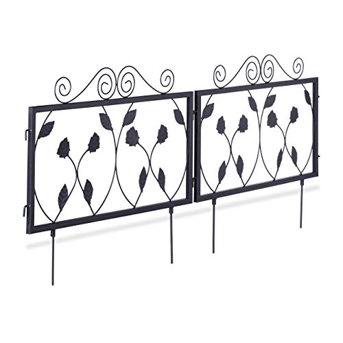 Relaxdays 10020696 Clôture décorative de jardin en métal panneau extérieur 47 x 56,5 cm, noir
