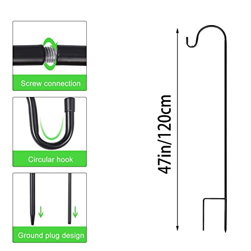 Ovker Crochets de Berger, Lot de 2 120cm Crochets de Berger en Métal , Crochet de Jardin Hauteur Réglable et Résistant à la Rouille pour Mangeoire à Oiseaux, Boules de Fleurs Plantes, Mariages