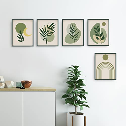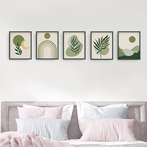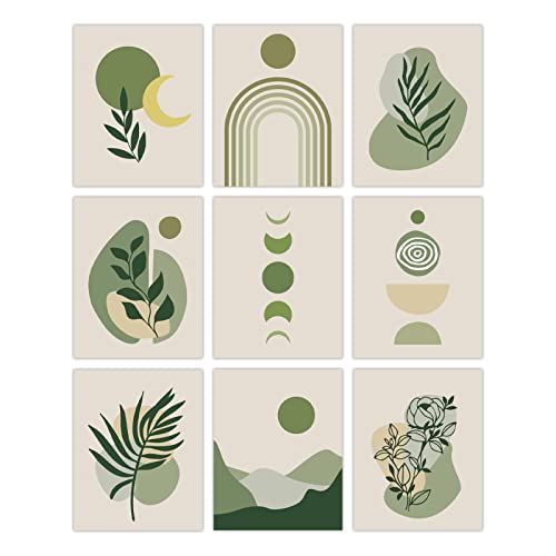 Boho Minimalist Botanical Canvas Art Prints: Notre peinture murale est en vert comme couleur principale, le contenu principal est un abstrait géométrique botanique minimaliste, adapté à la maison, salon, décoration murale chambre.