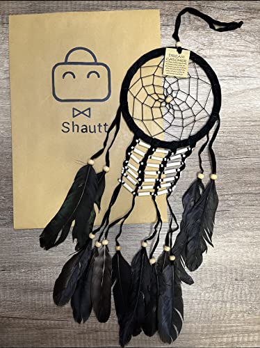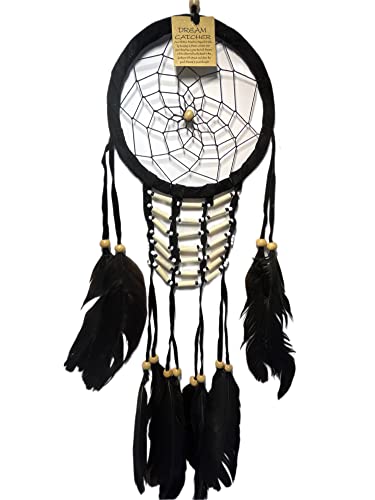 Grand attrape-rêves avec plumes dreamcatcher décoration murale (noir)
