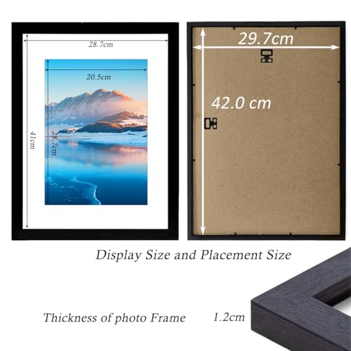 Cadre photo A3 en bois 29,7 x 42 cm, cadre noir A3 pour impression A3, cadre photo A3 pour impressions A4 avec passe-partout, cadre mural pour décoration de pièces, préservez vos souvenirs