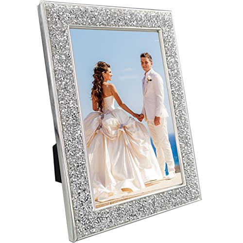 PIGPIGFLY Cadre Photo 10x15cm Argent en Verre, Cadres Photo Mariage, Cadre Photo Pailleté, Pour Photos de Bébé, Photos de Famille Et Photos de Mariage, Cadeau