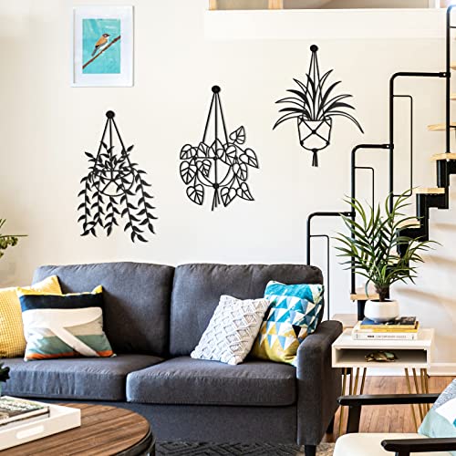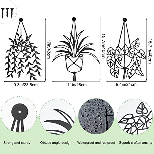 3 Pièces Vase à Fleurs Art Mural en Métal Décor de Ornements Fleur dans Un Vase Décoration Murale, Noir Élégante Plante En Pot Mur Art Sculpture pour Chambre Salle De Bains Cuisine Extérieur Intérieur