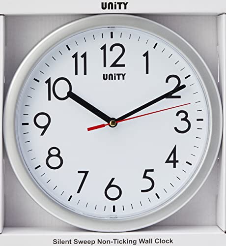 Horloge Murale Unity, Hastings, Balayage Silencieux, Moderne, Argent, 22 cm