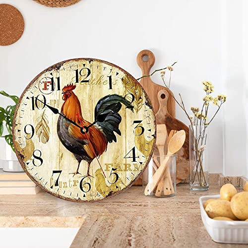 VIKMARI Horloge Murale silencieuse Non coutil – Courir Motif Cheval Cuisine Horloge Murale qualité Quartz Batterie Operated Horloge Murale Ronde 8 inch Coq Rustique