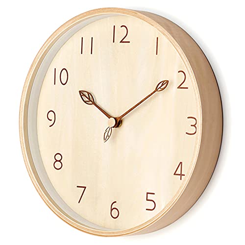 VIVILINEN Horloge Murale Bois Naturel Massif Horloge Bois 12 Pouces Mouvement Silencieux sans Bruit Tic-Tac Pendule Murale Style Moderne Simple Salon Chambre Cuisine