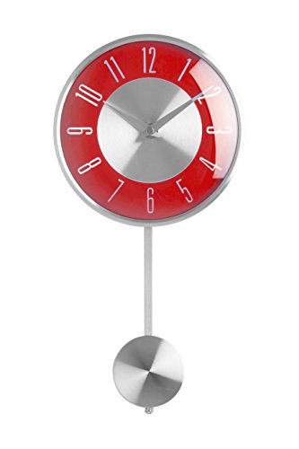 Harts – 2200306 – Horloge Murale – Retro Pendulum – 39 x 80 x 9cm – Rouge/Argent