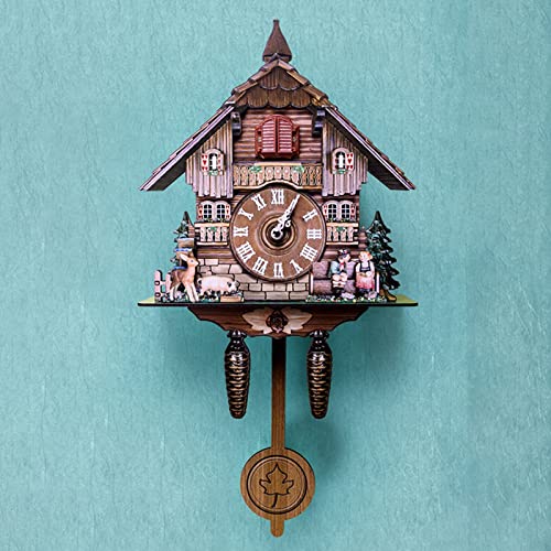 Ruspela Horloge coucou en bois avec pendule horloge murale décoration pour maison, café, restaurant, hôtel