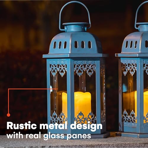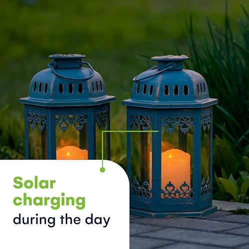 Il vous faut ! Un cadeau idéal pour la saison – Une paire de lanternes solaires SteadyDoggie illuminent votre maison et votre jardin. Ces lanternes solaires à bougie fabriquées à la main offrent une merveilleuse ambiance à votre terrasse, pelouse ou jardin. Une jolie lanterne de jardin pour l’intérieur et l’extérieur dans un boîtier métallique solide de 17 x 17,5 x 26,9 cm avec des vitres en verre véritable. Design intelligent avec charme antique : fonctionnalité moderne enveloppée dans un charme d’époque, cette lanterne solaire est construite à partir d’un boîtier métallique solide avec du verre véritable. Chaque lanterne solaire est alimentée par une LED qui offre une lumière vacillante comme une vraie bougie sans le désordre. Simplicité et commodité : peut être entièrement alimenté par l’énergie solaire, aucune installation ou câblage supplémentaire n’est nécessaire pour cette agréable décoration de jardin. Lisez les instructions d’installation (français non garanti) et placez simplement chaque lanterne solaire extérieure dans un endroit ensoleillé et profitez de l’éclairage de la lanterne dès le crépuscule. Pendant la journée, le panneau solaire convertit la lumière du soleil en électricité et recharge la batterie. La nuit, les lanternes s’allument automatiquement avec l’électricité stockée pendant la journée. Ou utiliser en intérieur avec une pile AA normale (non incluse). Sauvez l’environnement et économisez de l’argent. Nous croyons fermement aux avantages environnementaux de l’énergie solaire et nous nous efforcerons de répondre durablement à nos besoins avec le développement de produits solaires innovants, de haute qualité et fiables avec de faibles coûts d’exploitation. Économisez l’environnement et économisez de l’argent en passant à l’énergie solaire. Commandez vos lanternes solaires SteadyDoggie dès aujourd’hui. Lanternes solaires d’extérieur – Lanterne solaire LED bleue – Lanterne solaire d’extérieur avec bougies – Lanterne solaire pour l’extérieur bleue – Lanternes solaires d’extérieur imperméables – Lanternes solaires blanches à suspendre – Lanternes de Noël extérieures