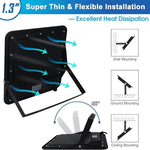 ►【facile à installer】: Conçu avec un support réglable à 180 °, le projecteur LED peut être installé au mur, au plafond ou au sol selon vos besoins. Idéal pour une utilisation intérieure et extérieure, comme les jardins, les usines, les stades, les cours, les terrains de jeux, les pelouses, les garages, etc.