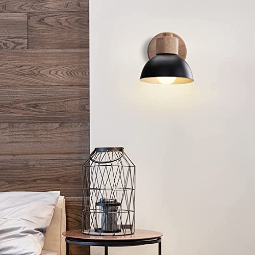 iDEGU Applique Murale Industrielle Vintage 15CM Lampe Murale Réglable en Bois Métal Rétro E27 Luminaire Applique Interieur pour Chambre Salon Couloir Restaurant (2 Pack, Noir)