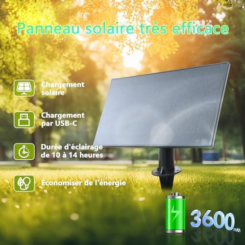 【Énergie solaire et auto en marche / arrêt】Guirlande lumineuse exterieure sont équipées d’un panneau solaire de 3W / 5,5 V. Propulsé par l’énergie solaire, guirlande led exterieur s’éteindront automatiquement et se chargeront pendant la journée, et s’allumera automatiquement au crépuscule pour travailler 8 à 12 heures la nuit lorsqu’il est complètement chargé. (Le panneau reçoit 6 à 8 heures de lumière directe du soleil direct pour être entièrement chargé)