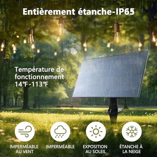 【 Résistant aux intempéries et étanches】Guirlande exterieur solaire sont construites avec une technologie résistante aux intempéries, qui peut résister bien à des températures extrêmes, à des climats pluvieux, venteux ou humides. L’ampoule en plastique vintage est étanche, et elles ne sont pas facilement brisées même tombées ou soufflées dans le vent. Ainsi, vous pouvez laisser en toute confiance ces feux de chaîne ultra-durables en affichage toute l’année.