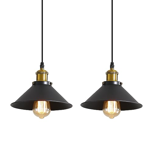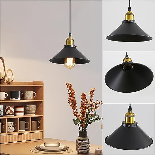 DELIPOP Suspension Rétro Industriel, Vintage Lustre Industrielle Métal, E27 Plafonniers Design Edison Lampe Suspension pour Cuisine Salle à Manger Café Bar Restaurant, Ø22CM, Noir