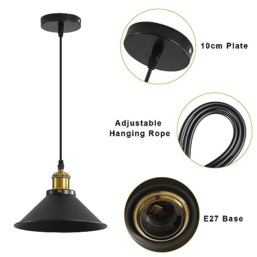 【Matériau de Haute Qualité】Le matériau principal du corps de la lampe est le fer, et la surface de l’abat-jour est peinte au pistolet en noir classique. Les lampes suspendues vintage ont une couleur uniforme et ne rouillent pas, ce qui leur confère une grande résistance à la corrosion.