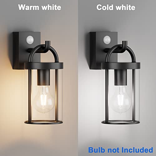Klighten Applique Murale Vintage Exterieur, avec Détecteur de Mouvement, Lampe Murale Industrielle, Noir Lampe Exterieur Murale Rétro, Applique Mural Aluminium 40W Max, Douille E27, IP44, Sans Ampoule