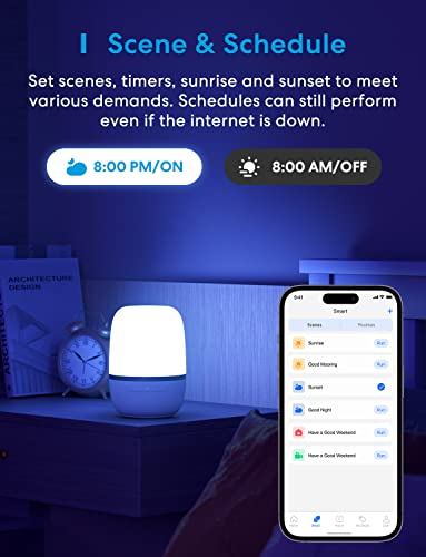 ⭐LAMPE DE CHEVET LED AVEC COMMANDE VOCALE: La veilleuse LED intelligente est compatible avec Apple HomeKit, Siri, HomePod Mini, Apple Watch, Airpods, Amazon Alexa, Echo, Echo Dot, Google Assistant, Google Home, Nest Hub et Google Nest, il suffit de donner une commande vocale pour allumer et éteindre la veilleuse LED, même changer la couleur et ajuster la luminosité. La lampe Wi-Fi Meross vous donne une vie confortable et détendue.