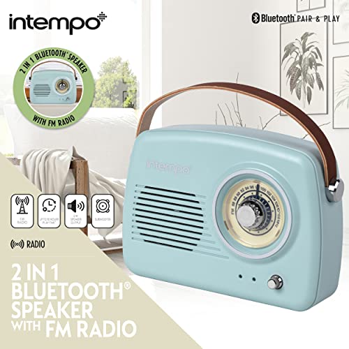 Intempo® EE3332BLUSTKEU Rechargeable Bluetooth Speaker with FM Radio and Leather Carry Strap for Android or Other Smart Devices, 5 W Speaker Output with Micro USB Charging Cable, Blue