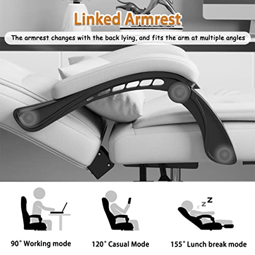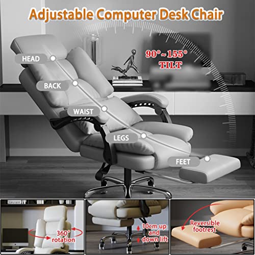Fauteuil de Bureau Fauteuil De Bureau Cuir Blanc Fauteuil De Direction Inclinable, Chaise D’ordinateur Élastique À Double Couche, Chaise De Bureau Ergonomique Pivotante À 360°, Facile À Assembler