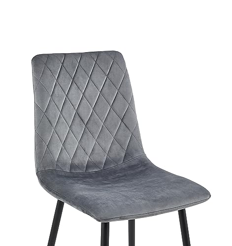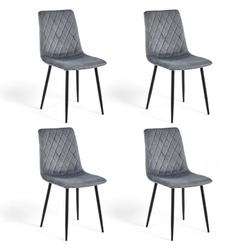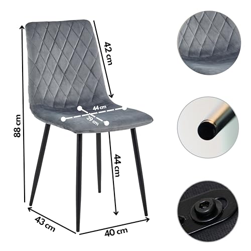 Mevsim Store Chaise de Salle à Manger 4 Lot de Grey – Velours – Pied métallique – Fauteuil de Salon – Fauteuil Velours Chaise – Chaise de Cuisine INOX