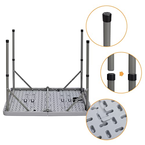 Haute qualité – Construit avec un bureau en plastique HDPE et un cadre en fer enduit de poudre, sûr, robuste et durable. Ces pieds de table de camping sont équipés de patins antidérapants pour éviter les rayures sur le sol, augmenter la stabilité et également aider à maintenir l’équilibre sur le sol en herbe ou sur les plages.