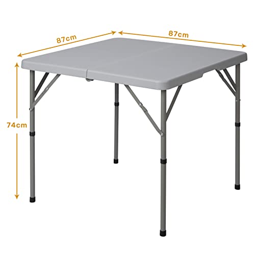 HollyHOME Table Pliante Table de Camping 87cm, Table de Pique-Nique Table à Mange Carrée pour Jardin Barbecue Restauration Fête Cuisine, Gris