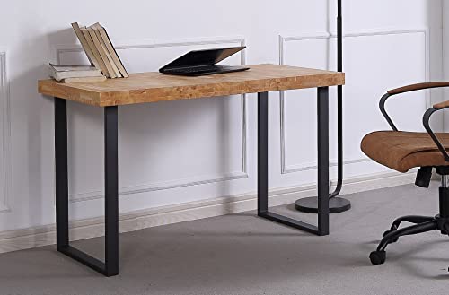 Skraut Home | Bureau | Table d’étude | Modèle Naturel | 120 x 60 x 73 cm | Bois Couleur Chêne | Pieds en Métal Noir | Bureau de Style Nordique