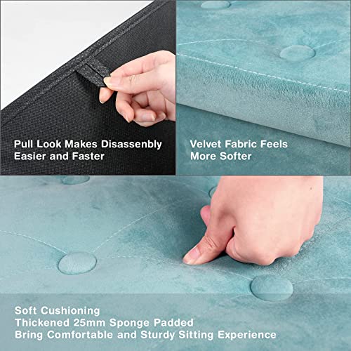 BRIAN & DANY Pouf Coffre de Rangement Repose-Pieds avec Couvercle, 76 x 38 x 38 cm, Velours Vert