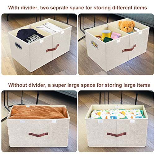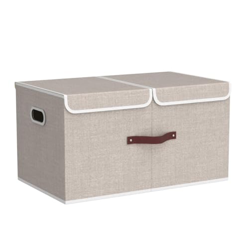 TYEERS Extra Grande Boîte de Rangement avec Couvercles à Compartiments, Pliable, Lavable, Bac de rangement Tissu, 55x33x30 cm, Lot de 2, Beige