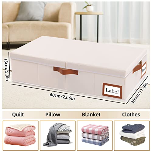 Yawinhe Lot de 2 Sac de Rangement sous Lit avec Couvercle,Housse de Rangement pliable,Avec 3 poignées renforcées,pour Ranger Les vêtements, Couettes,Literie,60x30x15cm,Beige