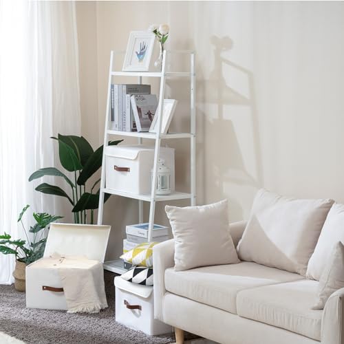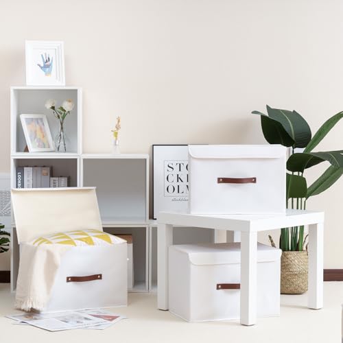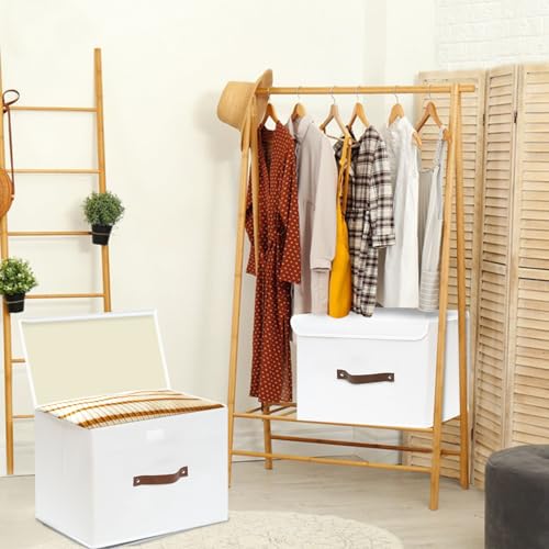 Yawinhe Lot de 3 Boîte de Rangement, Pliable de avec Couvercle, Caisse de Rangement, pour Serviettes, Vêtements, 38x25x25cm, Blanc, SNK018WL