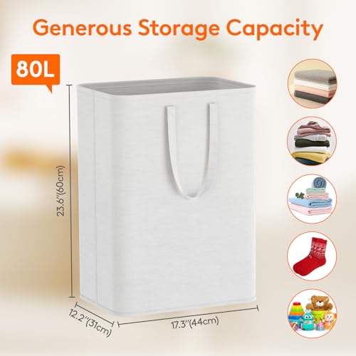Lifewit Lot de 2 Paniers a Linge Pliable 80L, Corbeille a Linge avec Poignées Allongées, Panier à Linge en Tissu, Sac a Linge Sale pour Enfants, pour Chambre, Salle de Bain, Buanderie, Blanc