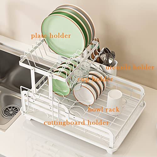YunNasi Égouttoir à Vaisselle Pliable Egouttoir Vaisselle sur Evier 2 Niveaux Vaisselle Égouttoir en Métal avec Plateau Dish Rack avec Porte-ustensiles et Porte-Planche (Noir)