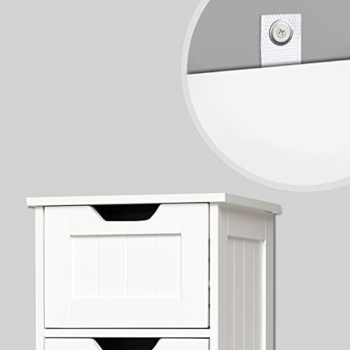 Conception pratique: Les dimensions du meuble sont : L30 x L30 x H82,5 cm. Le meuble à tiroirs a des pieds fermes et les pièces anti-basculement fournies peuvent être installé selon les besoins et fixer le produit au mur pour une utilisation sécuritaire.