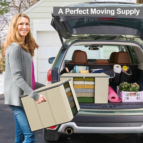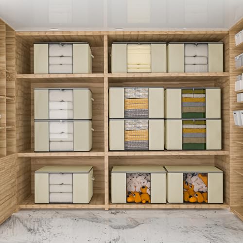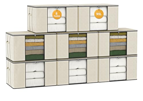 Lot de 8 Sac de Rangement 90L, Grand Boite Rangement Caisse Rangement Cartons Déménagement Housse Rangement Piable, Sac de Rangement Sous Lit Édredons Couvertures Oreillers Jouets Vêtements Beige