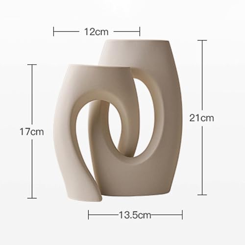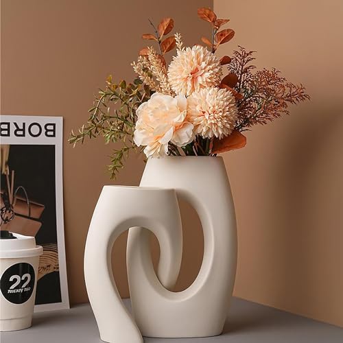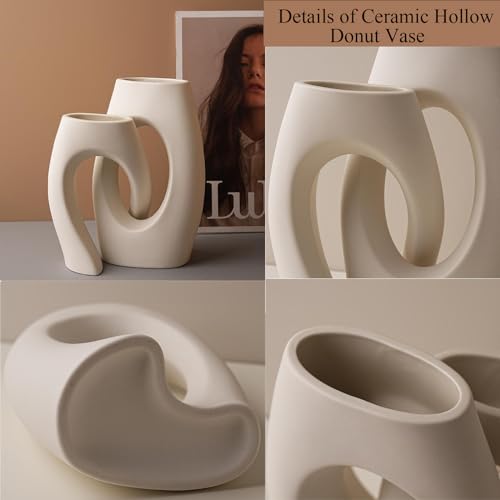 Lot de 2 Vases en Céramique Vase Nordique Beignet Vase Céramique Blanc Mat Vase avec Trou Bohème Vase Couple Amoureux pour Table de Mariage, Fête, Salon, Chambre, Bureau, Pendaison de Crémaillère
